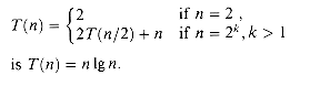 (n). Adding it to the 2T(n/2) term from the "conquer" step gives the recurrence for the worst-case running time T(n) of merge sort: