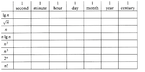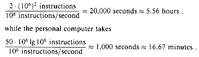 2There are some subtleties here. Computational steps that we specify in English are often variants of a procedure that requires more than just a constant amount of time. For example, later in this book we might say "sort the points by x-coordinate," which, as we shall see, takes more than a constant amount of time. Also, note that a statement that calls a subroutine takes constant time, though the subroutine, once invoked, may take more. That is, we separate the process of calling the subroutine--passing parameters to it, etc.--from the process of executing the subroutine.