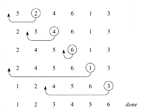 Figure 1.2 The operation of INSERTION-SORT on the array A =