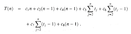 T(n) = c1n + c2 (n - 1) + c4 (n - 1) + c5 (n - 1) + c8 (n - 1)