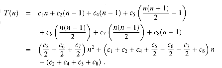 This worst-case running time can be expressed as an2 + bn+ c for constants a, b, and c that again depend on the statement costs ci; it is thus a quadratic function of n.