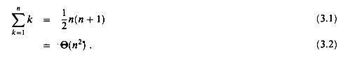 Section 3.1 lists several basic formulas involving summations. Section 3.2 offers useful techniques for bounding summations. The formulas in Section 3.1 are given without proof, though proofs for some of them are presented in Section 3.2 to illustrate the methods of that section. Most of the other proofs can be found in any calculus text.