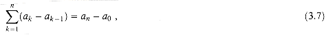since each of the terms a1, a2, . . . , an-1 is added in exactly once and subtracted out exactly once. We say that the sum telescopes. Similarly,