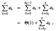 For a summation arising from the analysis of an algorithm, we can often split the summation and ignore a constant number of the initial terms. Generally, this technique applies when each term ak in a summation