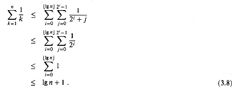 The technique of splitting summations can be used to determine asymptotic bounds in much more difficult situations. For example, we can obtain a bound of 0(lg n) on the harmonic series (3.5):