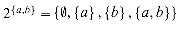 The set of all subsets of a set S, including the empty set and the set S itself, is denoted 2S and is called the power set of S. For example,