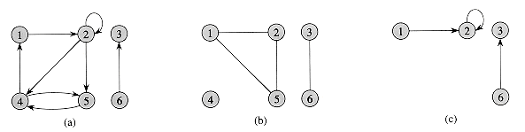A directed graph (or digraph) G is a pair (V, E), where V is a finite set and E is a binary relation on V. The set V is called the vertex set of G, and its elements are called vertices (singular: vertex). The set E is called the edge set of G, and its elements are called edges. Figure 5.2(a) is a pictorial representation of a directed graph on the vertex set {1, 2, 3, 4, 5, 6}. Vertices are represented by circles in the figure, and edges are represented by arrows. Note that self-loops--edges from a vertex to itself--are possible.