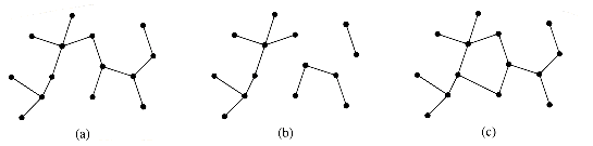 Figure 5.4 (a) A free tree. (b) A forest. (c) A graph that contains a cycle and is therefore neither a tree nor a forest.