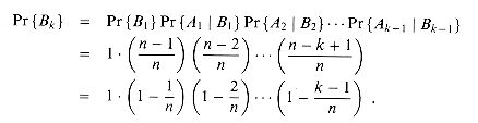 bi for i = 1, 2, . . . , k - 1 is (n - k + 1)/n, since out of the n days, there are n - (k - 1) that are not taken. By iterating the recurrence (6.46), we obtain