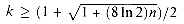2n ln 2 or, solving the quadratic equation, when