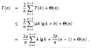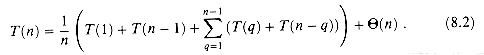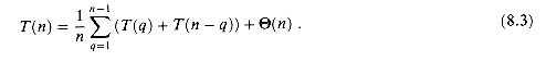 where the parameter q ranges from 1 to n - 1 because the procedure PARTITION produces two regions, each having size at least 1. We guess that T(n)