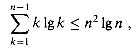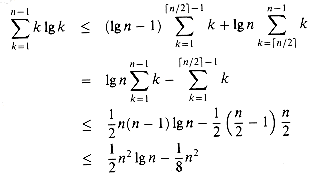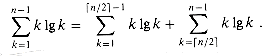 The lg k in the first summation on the right is bounded above by 1g(n/2) = 1g n - 1. The lg k in the second summation is bounded above by lg n. Thus,