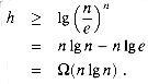 Proof Consider a decision tree of height h that sorts n elements. Since there are n! permutations of n elements, each permutation representing a distinct sorted order, the tree must have at least n! leaves. Since a binary tree of height h has no more than 2h leaves, we have