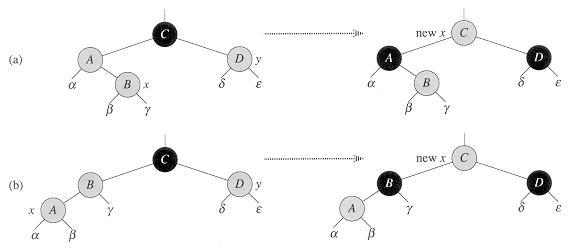 is 3, both before and after the transformation. (Remember, the pointer x adds an extra black.) Similarly, the number of black nodes from the root to any of