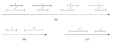 high[i]. Any two intervals i and i' satisfy the interval trichotomy; that is, exactly one of the following three properties holds: