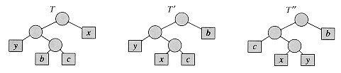 Proof The idea of the proof is to take the tree T representing an arbitrary optimal prefix code and modify it to make a tree representing another optimal prefix code such that the characters x and y appear as sibling leaves of maximum depth in the new tree. If we can do this, then their codewords will have the same length and differ only in the last bit.