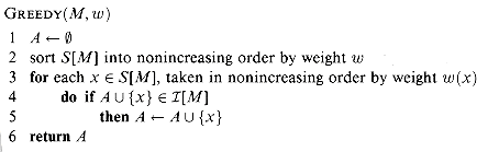 and the weight function by w. The algorithm is greedy because it considers each element x