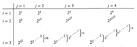 Figure 22.7 shows schematically why Ackermann's function has such explosive growth. The first row, exponential in the column number j, is already rapidly growing. The second row consists of the widely spaced subset of columns