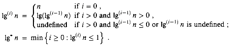 2Although this function is not the inverse of Ackermann's function in the true mathematical sense, it captures the spirit of the inverse in its growth, which is as slow as Ackermann's function is fast. The reason we use the mysterious lg n threshold is revealed in the proof of the O(m