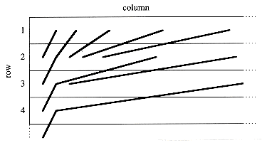 , . . . of the second row, which is an even sparser subset of columns of the first row. In general, the spacing between columns of row i - 1 appearing in row i increases dramatically with both the column number and the row number. Observe that