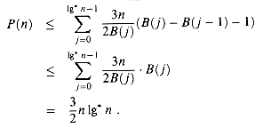 xl before path compression, so that xi will be assigned a new parent during path compression. Moreover, as we have observed, xi's new parent has a higher rank than its old parent. Suppose that node xi's rank is in block j. How many times can xi be assigned a new parent, and thus assessed a path charge, before xiis assigned a parent whose rank is in a different block (after which xi will never again be assessed a path charge)? This number of times is maximized if xi has the lowest rank in its block, namely B(j - 1) + 1, and its parents' ranks successively take on the values B(j - 1) + 2, B(j - 1) + 3, . . . , B(j). Since there are B(j) - B(j - 1) - 1 such ranks, we conclude that a vertex can be assessed at most B(j) - B(j - 1) - 1 path charges while its rank is in block j.