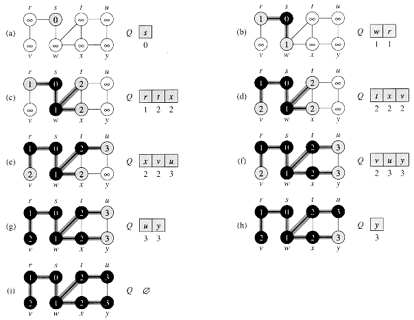 Figure 23.3 illustrates the progress of BFS on a sample graph.