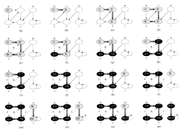 Figure 23.4 illustrates the progress of DFS on the graph shown in Figure 23.2.