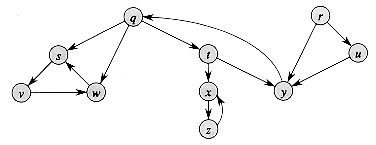 (V + E)-time) algorithm computes the strongly connected components of a directed graph G = (V, E) using two depth-first searches, one on G and one on GT.