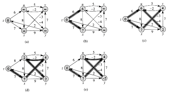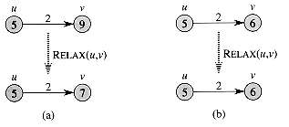 Figure 25.3 shows two examples of relaxing an edge, one in which a shortest-path estimate decreases and one in which no estimate changes.