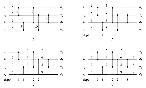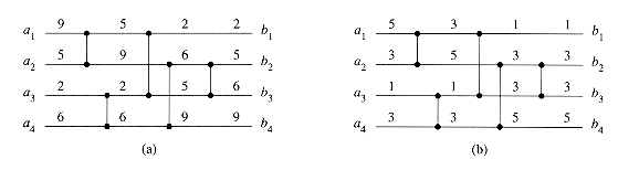 Figure 28.5 (a) The sorting network from Figure 28.2 with input sequence