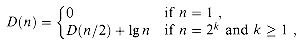 We can analyze the depth of the sorting network recursively. The depth D(n) of SORTER[n] is the depth D(n/2) of SORTER[n/2] (there are two copies of SORTER[n/2], but they operate in parallel) plus the depth lg n of MERGER[n]. Consequently, the depth of SORTER[n] is given by the recurrence