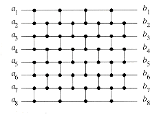 Figure 28.13 An odd-even sorting network on 8 inputs.