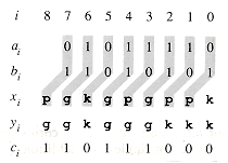 2. If yi = g, then either we have xi = g or we have xi = p and yi-1 = g. If xi = g, then ai-1 = bi-1= 1, which implies ci = 1. If xi = p and yi-1 = g, then ai-1