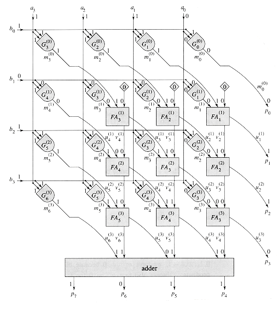 In this section, we examine two circuits for multiplying two n-bit numbers. Array multipliers operate in