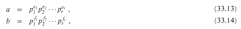 with zero exponents being used to make the set of primes p1, p2, . . . , pr the same for both a and b, then