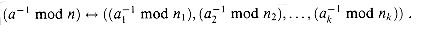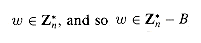 which should be read as equivalent to equation (33.3) with the understanding that 0 represents [0]n, 1 represents [1]n, and so on; each class is represented by its least nonnegative element. The underlying equivalence classes must be kept in mind, however. For example, a reference to - 1 as a member of Zn is a reference to [n - 1]n, since - 1