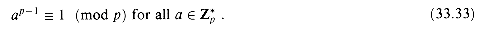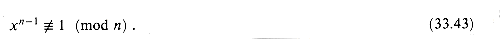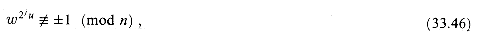 1 (mod n) but x is equivalent to neither of the two "trivial" square roots: 1 or -1, modulo n. For example, 6 is a nontrivial square root of 1, modulo 35. The following corollary to Theorem 33.34 will be used in the correctness proof for the Miller-Rabin primality-testing procedure in Section 33.8.