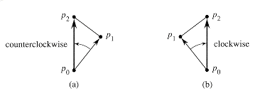 Several of the computational-geometry algorithms in this chapter will require answers to questions about the properties of line segments. A convex combination of two distinct points p1 = (x1, y1) and p2 = (x2, y2) is any point p3 = (x3, y3) such that for some