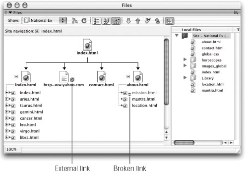 which pages link to or from it. To see those relationships, you need Dreamweaver's