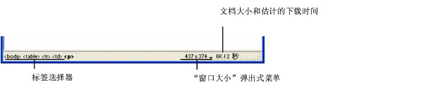 “窗口大小”弹出式菜单的右侧是页面(包括全部相关的文件,如图像和其他媒体文件)的文档大小和估计下载时间。请参见设置下载时间和大小。