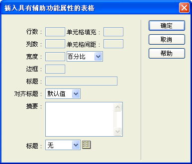 当您插入表并且已经在辅助功能参数选择中选择“表”选项时,Dreamweaver 会提示您为每个表输入一个名称,以使其可以使用。