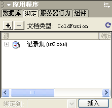 备注: “组件”面板只有在您打开 ColdFusion、JSP 或 ASP.NET 页时才被启用。另外,文档有可能不支持某些组件。例如,ColdFusion 文档不支持 JavaBeans。