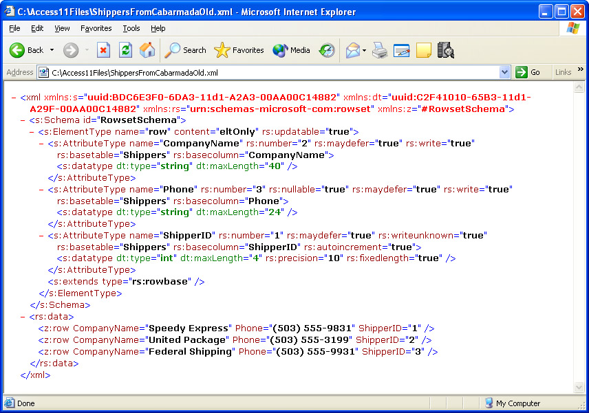 If you run the same procedure as SaveEditInsertShippersAt-NorthwindCS, except for updating its connections so that it initially opens and later updates the Access Northwind database file, it will fail. The precise error description is "Cannot update 'ShipperID'; field not updateable." The solution to this problem for Access database files is to construct the initial file-based recordset without primary keys that have an AutoNumber data type. Use a SQL statement as your source for the saved recordset to accomplish this. This book's companion content includes a sample procedure, SaveEditInsertShippersAtNorthwind, with the detailed code to perform this task. |