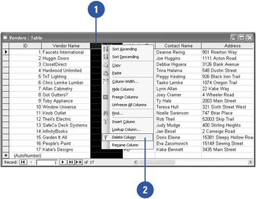 Managing Columns in Datasheet View