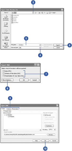 XML (Extensible Markup Language) is a universal language that enables you to move information across the Internet and programs where the data is stored independently of the format so you can use the data more seamlessly in other forms. XML is fully supported in Office 2003 through Word, Excel, and Access. Access allows you to import and export XML data as well as transform the data to and from other formats using XML related files, such as Extensible Stylesheet Language (XSL), which provides a flexible and consistent way to present your data. When you import and export XML data, you can use an XML Schema (XSD)—a set of rules that defines the elements and content used in an XML file—to ensure the data conforms to a defined structure. XML schemas and XSL transformations are created by developers who understand XML.