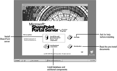 In order for you to install the new version of SharePoint, you must Install Windows 2003 Server. Windows 2003 Server uses the new .NET Architecture Internet Information Server (IIS) 6.0, Microsoft SMTP (Simple Mail Transport Protocol) Service and Microsoft SQL Server 2000 Desktop Engine (MSDE 2000) or Microsoft SQL Server 2000 Enterprise or Standard Edition (64-bit), with Microsoft SQL Server 2000 SP3 or later.
