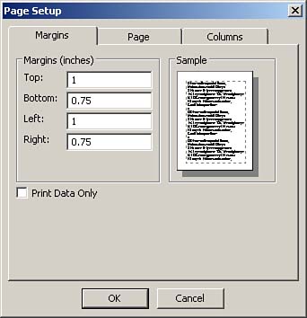 While previewing the report, click the Setup button on the Preview toolbar. The Page Setup dialog box appears (see Figure 5.5).