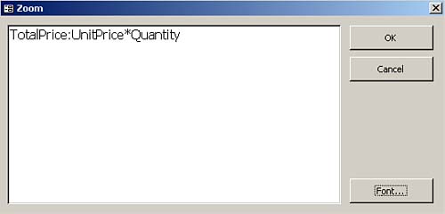 Creating Calculated FieldsOne of the rules of data normalization is that you shouldn't include the results of calculations in a database. You can output the results of calculations by building those calculations into queries, and you can display the results of the calculations on forms and reports by making the query the foundation for a form or report. You can also add to forms and reports controls that contain the calculations you want. In certain cases, this can improve performance. The columns of a query result can hold the result of any valid expression. This makes queries extremely powerful. For example, you could enter the following expression: Left([FirstName],1) & "." & Left([LastName],1) & "." This expression would give you the first character of the first name, followed by a period, the first character of the last name, and another period. An even simpler expression would be this one: [UnitPrice]*[Quantity] This calculation would simply multiply the UnitPrice field by the Quantity field. In both cases, Access would automatically name the resulting expression. For example, Figure 10.19 shows the calculation that results from concatenating the first and last initials. Notice in the figure that Access gives the expression a name (often referred to as an alias). To give the expression a name, such as Initials, you must enter it as follows: Initials:Left([FirstName],1) & "." & Left([LastName],1) & "." Figure 10.19. The result of using the expression Initials:Left([FirstName],1) & "." & Left([LastName],1) & "." in a query.