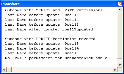 Debug.Print vbLf & "Outcome with UPDATE Permission revoked"