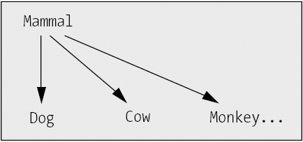 When thinking about an abstraction hierarchy such as the one shown in Figure 2-2, we mentally step up and down the hierarchy, automatically zeroing in on only the single layer or subset of the hierarchy (known as a subtree) that is important to us at a given point in time. For example, we may only be concerned with mammals, and so can focus on the mammalian subtree, shown in Figure 2-3, temporarily ignoring the rest of the hierarchy.
